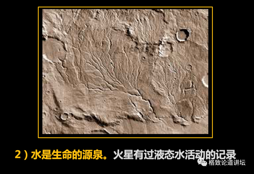 火星曾经有过水体,生命跟水是在一起的,所以就跟踪水来探测生命,不过探测到今天也没个结果。大家期望能够找到哪怕是最低等的生命,哪怕是细菌也是值得珍惜的。