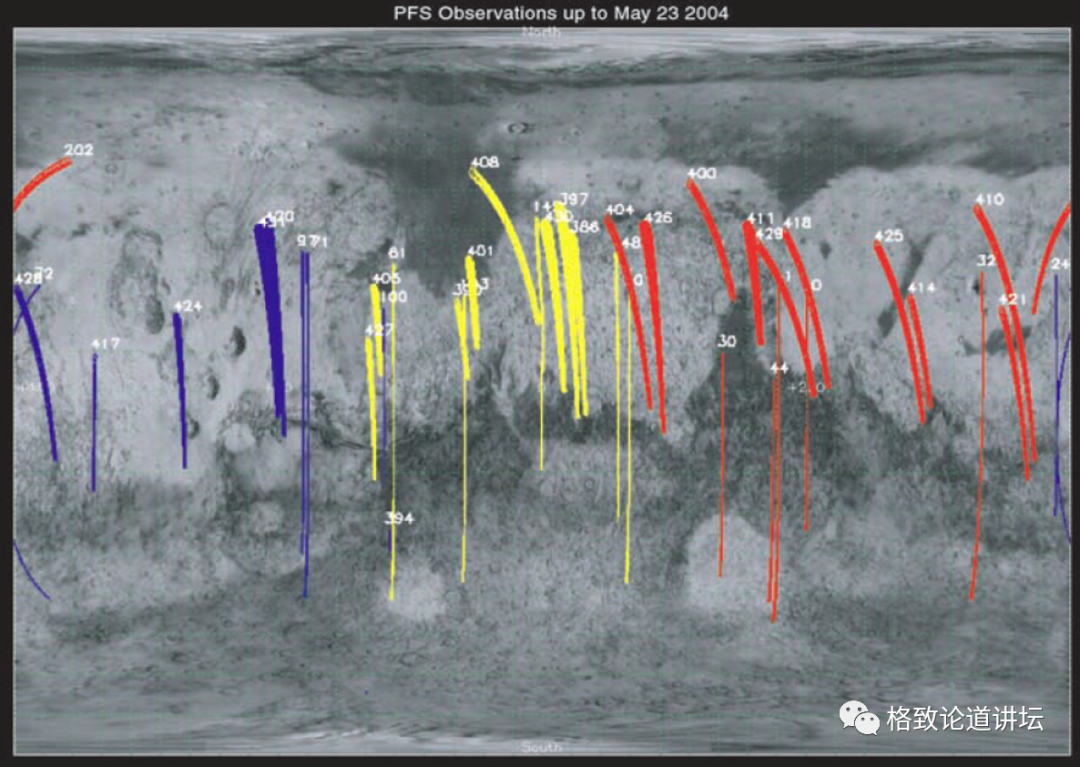 这是火星的水蒸气分布以及甲烷的分布。甲烷的分布只有十亿分之几,很少很少,科学家们还要抓住这一点一直探测。
