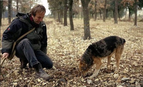 相对于猪的冲动,狗的脾气秉性就好掌握得多。在人们的训练下,通过雌性猎犬来寻找松露也是个不错的手段。熟练的松露搜寻犬会用它的爪子在松露所在的位置上做个记号,然后再由人来闻气味,判断松露是否成熟,再将其小心翼翼地从泥土里挖出来。