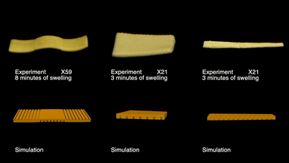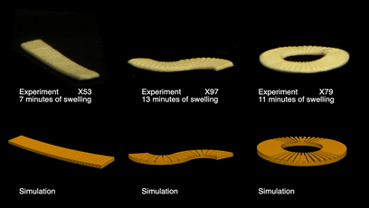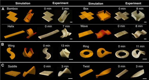 变形意面的原理并不复杂,实验团队利用意面在煮沸时会膨胀变软的特性,在扁平表面雕刻不同的凹槽,通过不同位置的膨胀,将平面转换成设计好的三维形状。