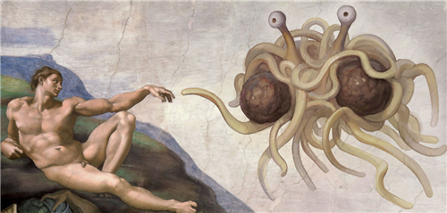 甚至有一个分外滑稽的组织,把意面奉为创世神,称它为「飞天意面神」。