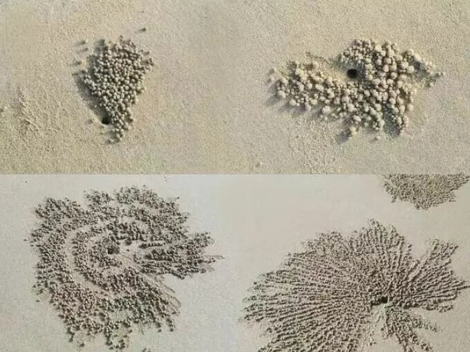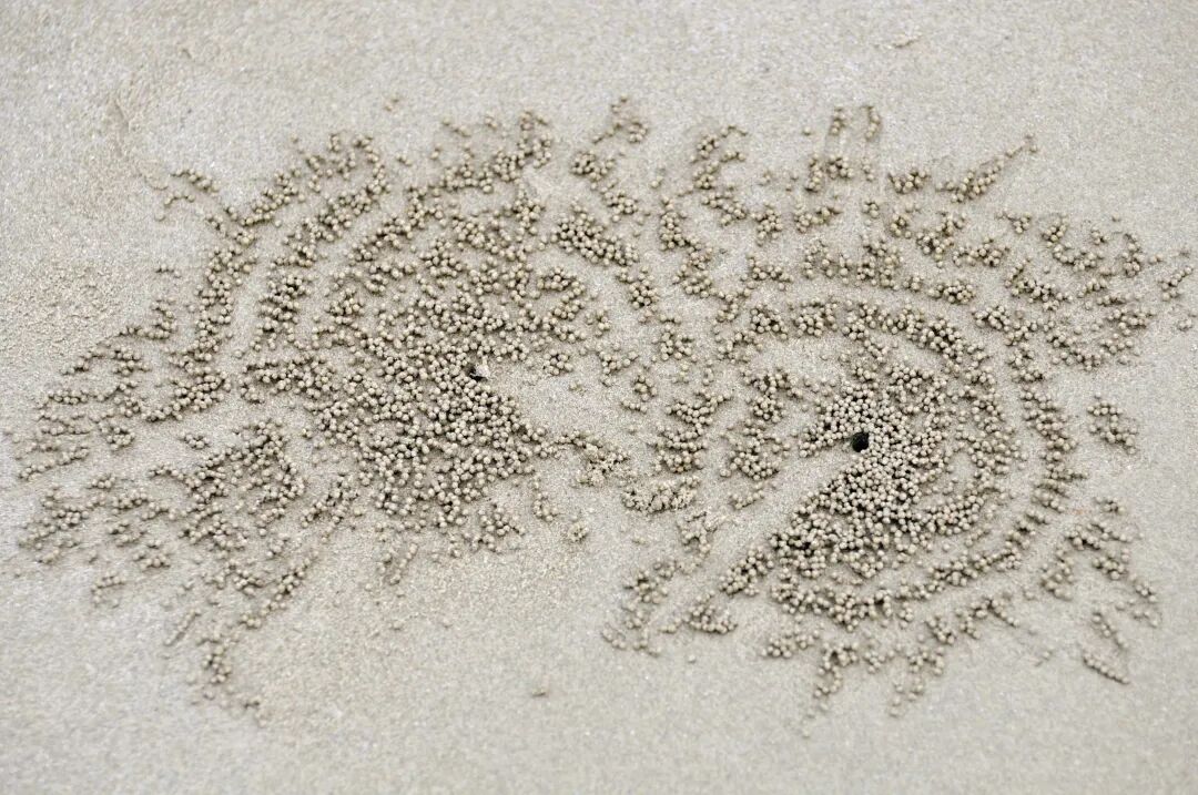 在海边时,你有没有注意过,沙滩上有些小沙球,还排成规律的放射形图案。