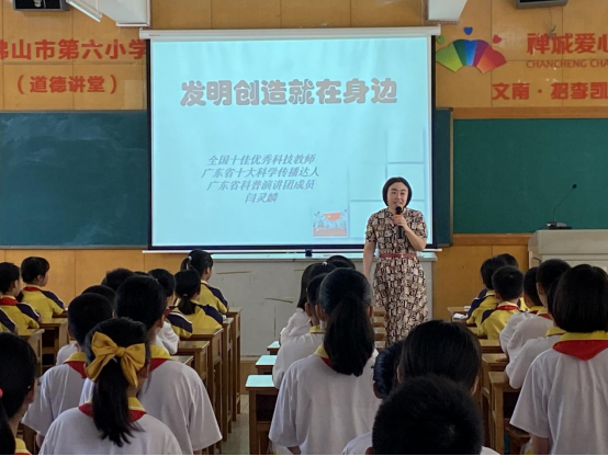 5月13日,禅城区科协邀请了南海第一中学闫灵麟副校长为佛山第六小学孩子们作了一场别开生面的科普知识讲座——《发明创造就在身边》,第六小学三—六年级的学生代表参与了本次活动。