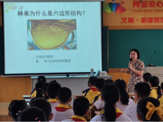 活动开始前,吴婉莹副校长对闫灵麟副校长进行了简单的介绍。闫灵麟副校长是全国十佳优秀科技教师、广东省十大科学传播达人、广东省科普演讲团成员、南海区十大杰出青年。辅导学生参加各级的科技创新大赛屡获佳绩。 闫灵麟校长以“蜂巢为什么是六边形架构?”来作为讲座的引入,激发学生们的求知欲。她指出了“好奇”在学习科学学或进行科技创新中的重要性。接着她介绍了进行科技创新发明的“十二法”:“加一加、拼一拼、减一减、学一学、扩一扩、代一代、缩一缩、搬一搬、变一变、反一反、定一定、改一改”。然后,闫灵麟校长结合了不少实例,生动形象地向同学们诠释了科技发明的目的——解决生活实际问题,体现了“爱科学、学科学、用科学”的探究精神。 闫灵麟校长生动有趣的讲课,大大激发了同学们探究科学的兴趣。同学们都听得津津有味,现场气氛非常活跃,很多同学积极举手提问,向闫灵麟校长如何进行创作发明。最后,闫校长激励同学们从现在开始,善于观察身边的事物,运用科技创新发明的“十二法”,勤于动手去尝试,相信下一个国家金奖就在这里诞生! 这次“科普快车进校园”活动主要目的是为了让学生体验科技与生活的密切联系,闫灵麟校长的科普讲座更好地激发孩子们对于科学学习的兴趣,给同学们种下科技创新的种子,充分培养学生的科学素养。