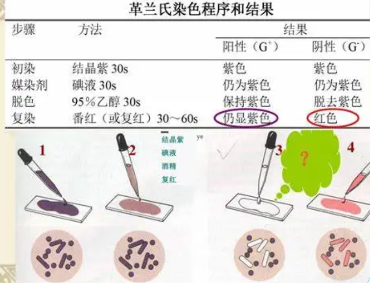 有了以上概念后,再来了解下革兰氏染色的实验步骤和方法原理。