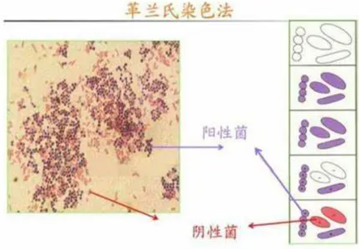 不同种属的细菌,会呈现紫色和红色两种染色结果。染色结果为紫色的,称之为革兰氏阳性菌,而红色的就是革兰氏阴性菌了。这里的阴阳,与通常人们所说的雌雄、男女及公母的意义不同,仅仅是细菌分类上的一个指标(“阳性”译自英文Positive,“阴性”译自Negative)。实际上,将其称之为革兰氏染色阳/阴性反应细菌更为妥当。