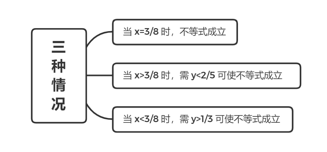 因为游戏是女人设计的,所以我们不妨从女人的角度考虑。女人希望调整自己的正面频率y,使得无论男人正面频率x为多大,不等式总是成立的。那么她能达到目的吗?