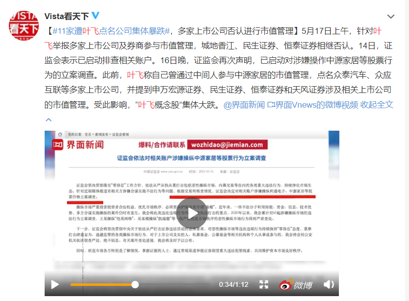 不知道各位同学中有没有炒股的,前几天被私募冠军叶飞爆料的几只股票大跌,甚至多家股价跌停。