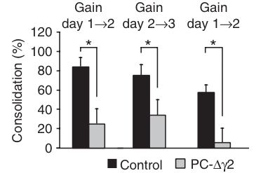 这与人类的的记忆方式有关。人的记忆包括陈述性记忆和程序性记忆两种。陈述性记忆又称为外显记忆(explicit memory),它能够通过有意识地回忆而被回想起来,比如我们生活中所经历的事情和在学校里学到的知识。按照记忆性质,它又可以被分为情景性记忆以及语义性记忆,前者泛指个人的生活经验,而后者指的是对周围世界中事物的认识。程序性记忆则与陈述性记忆对立,它又被称为内隐记忆(implicit memory),它存在于人的潜意识当中,指导人的行为和运动。这些「行为」与「运动」是通过不断重复与练习而习得的,在人们需要执行的时候,程序性记忆会被自动唤起,但很难用语言表达出来。而游泳便是涉及程序性记忆的运动之一。除此之外,还有骑自行车,弹吉他等等。这些运动都有一个特点,就是学会之后即使将其搁置多年,重新操作时也能很快恢复。实际上即使是阿尔兹海默症晚期的患者,他们也能保留运动技能。哥伦比亚籍美国神经科学家 Rodolfo Llinás,就曾经观察到一个处于昏迷状态的病人也能通过声带发出声音。从生理结构上来说,人脑中负责程序性记忆的大致包含三个部分,分别是小脑,基底核和纹状体。小脑在人对运动技能的掌握中扮演着重要的作用,它负责不断纠正学习学习过程中所犯的错误动作。当我们在学习一项运动的时候,小脑可以帮助我们自动完成对错误动作的修正,只是我们并没有意识到。最初由小脑皮层获得的记忆通过向外传播到其它的脑核团,完成学习后的强化过程。纹状体和基底核相互作用,在程序性记忆的获得中扮演关键角色。背外侧的纹状体与我们日常行为习惯的获得密不可分,它与管理基底核回路活动的传入神经纤维连接。从纹状体出发的两条平行的信息处理路径与其它功能结构相连接或交叉,以一条路径是径直到达另一条间接到达的方式组合在一起,形成功能性的神经反馈回路。这些回路与脑中的很多功能结构相联系,其中就包括了主要与程序性记忆中的运动技能相关的闭合回路。储存程序性记忆的过程并不是一蹴而就的。早在 1954 年,Paul Fitts 便提出了运动技能获取的模型,它分为三个步骤:第一步是认知层面,人们会自动将一系列动作分解成好几个小部分,然后逐一观察,并学习如何将它们串联起来;第二步就是大量的重复练习,在这一过程中很多错误的动作会被慢慢纠正,逐渐形成正确的步骤;最后便是在熟练之后动作的自然形成,通过对上一步纠正过后的规范动作的不断重复,我们便慢慢不需要经过意识便能把这些动作连接并自动呈现出来,就是所谓的「熟能生巧」。有研究认为,人们在学习运动技能的学习中并不需要有意识地将技能进行分解,而只需对规范动作的展示效果有一个概念性的认识即可。因此,学习就变成了「尝试—失败—潜意识里分析原因并调整动作—下一次尝试」的不断重复,在重复中便会发生神经上的变化。然而,神经发生这些变化的条件和诱因是什么?发生在人脑中的什么地方呢?这些变化的地点主要由两个因素决定:感觉输入对应的神经表象系统,和所需学习的运动技能的特性。由于突触可塑性和可变更性是人脑发育的特点,因此在不断练习中,突触的可塑性使得突触处于弹性的状态当中,并为与某项运动技能相关联的突触提供变更的可能,最终使得记忆存储在大脑皮层当中。而 2009 年发表于 Nature 的 Synaptic inhibition of Purkinje cells mediates consolidation of vestibulo-cerebellar motor learning 表明,小脑分子层上的抑制性中间神经元,给予位于小脑皮质中的浦肯野细胞前馈抑制,进而通过控制其细胞活动中的精细结构,来诱发小脑和前庭神经核中神经元突触的伸缩性,用来巩固知识。因此作者推断,前庭神经核是用来进行信息整合和巩固的地方。文章中的第一作者 Peer Wulff 设计了一组实验,将小鼠分成两组,其中实验组将浦肯野细胞中负责前馈抑制的 GABAA 受体选择性地移除,而另一组作为对照组。实验表明,尽管实验组的运动上的表现并没有与对照组有明显的差距,但其适应环境变化以及巩固知识的能力想比对照组则大打折扣。