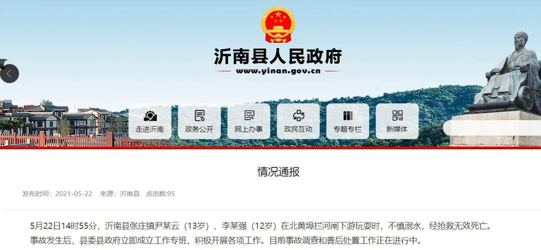 5月1日,广西省贵港市港南区新塘镇1名12岁男生到岭蒙水库下水玩耍时溺亡、贵港市港北区中里乡1名14岁男生溺水身亡、百色市田东县1名中学生擅自下河游泳溺亡、百色市乐业县幼平乡1名6岁留守男童私自下河游泳溺亡。