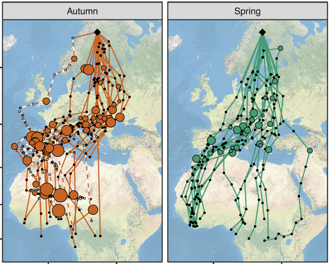 如此神奇的物种,人类当然也对它们倍感兴趣。最近瑞典隆德大学动物运动中心的苏珊娜·阿克松和朱塞佩·比安科就发表了一篇论文,揭示了普通雨燕迁徙期间疯狂的一面。由于雨燕飞到非洲度假后,几乎总会回到它们原来的繁殖地,研究人员在2010年、2012年和2014年捕捉了45只成年雨燕,在它们身上安装了微型地理定位仪——为了不影响它们飞行,这些装置的重量不到它们体重的3%。