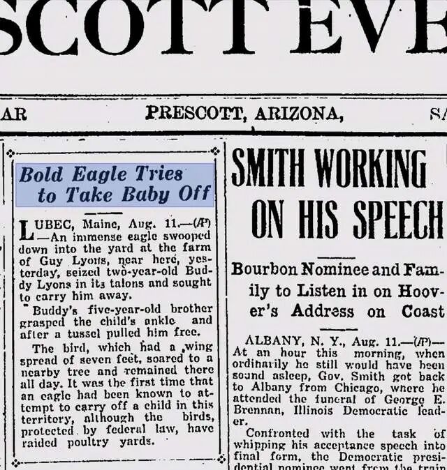 不仅如此,白头海雕还公然和人类作对,连人类的东西都敢抢。在海上它们抢夺渔民的渔获,在陆地它们捕食牧民的羊羔,甚至连成年的羊都不放过,1983年《威尔逊公报》就记录了一个案例,一只白头海雕竟然杀死了一头60公斤的怀孕绵羊,和其它三只雕一起分而食之!最让人无法容忍的,是有报道称它们连人类的小孩都敢强抢,你小时候经常听到的一句大人恫吓是不是:老鹰来了?