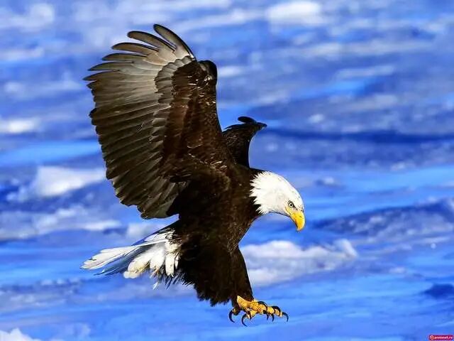 不像其它以食腐为生的鹰类,白头海雕虽然偶也食腐,但狩猎能力极强,空中飞的,地上跑的,水里游的,一切都是它的菜。有记录显示,一只白头海雕曾试图从后颈抓起一头体型硕大的北美棕熊,可能因为对方皮毛太厚,没法下“手”,海雕终不得要领而放弃。连北美陆地霸主都敢惹,可想而知白头海雕的心有多膨胀了,真正代表了不惧艰险、勇往无前的精神气质。