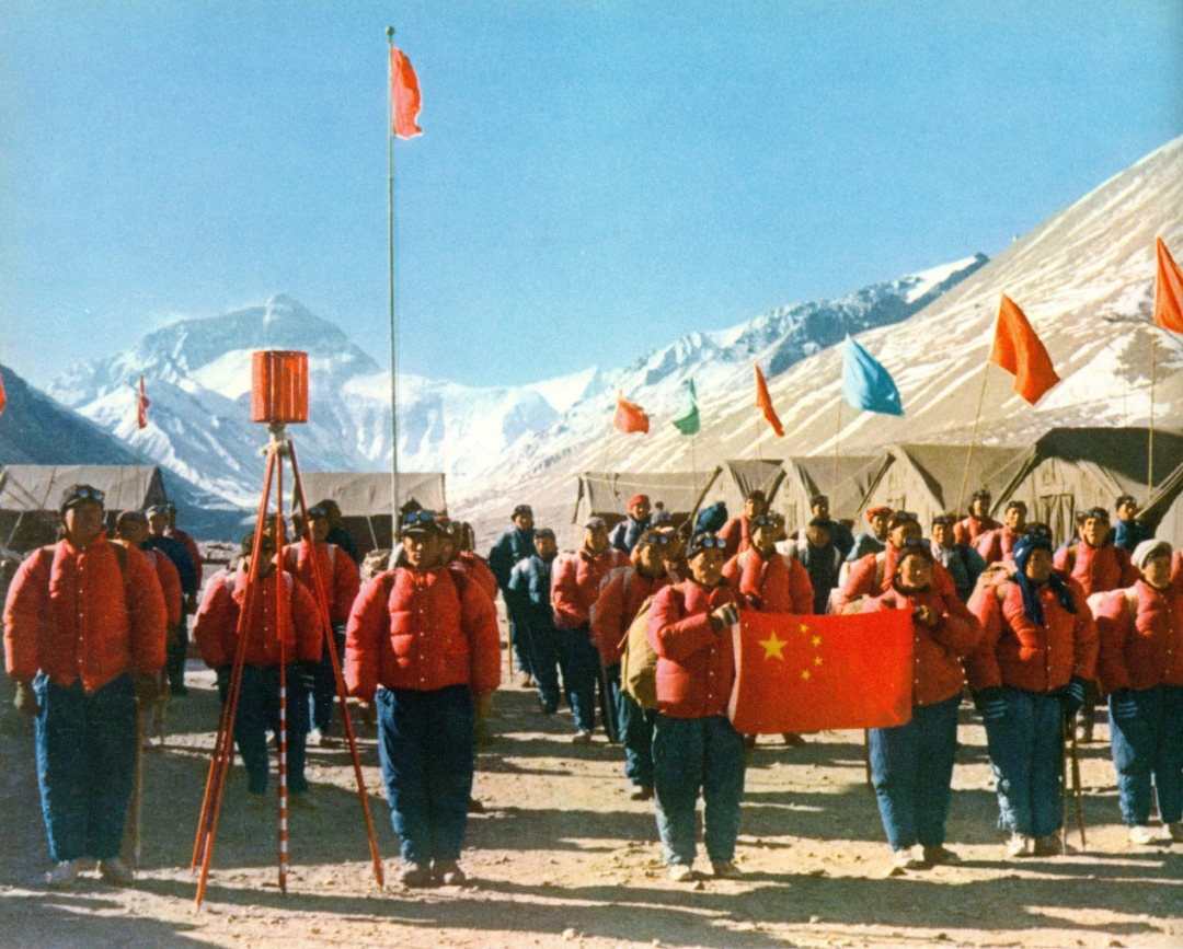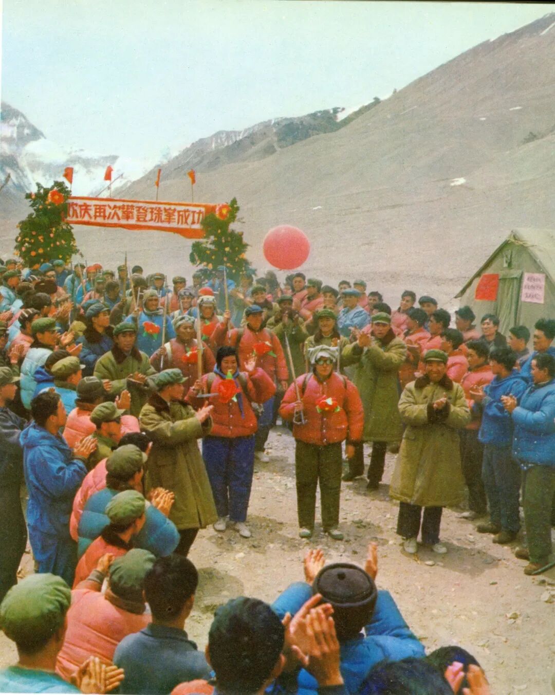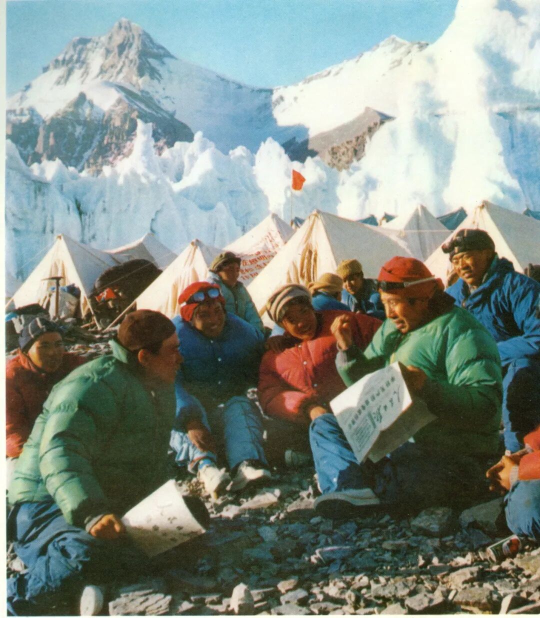 1975年3月,一支由179名登山运动员和255名科考、气象、通讯、新闻、医务、交通运输和后勤人员组成的中国登山队,来到北侧大本营。这是珠峰历史上最庞大的一支队伍,他们不仅承担着登顶的任务,而且肩负着测量珠峰高度的使命,以及进行地质、大气物理和高山生理等科学考察的任务。