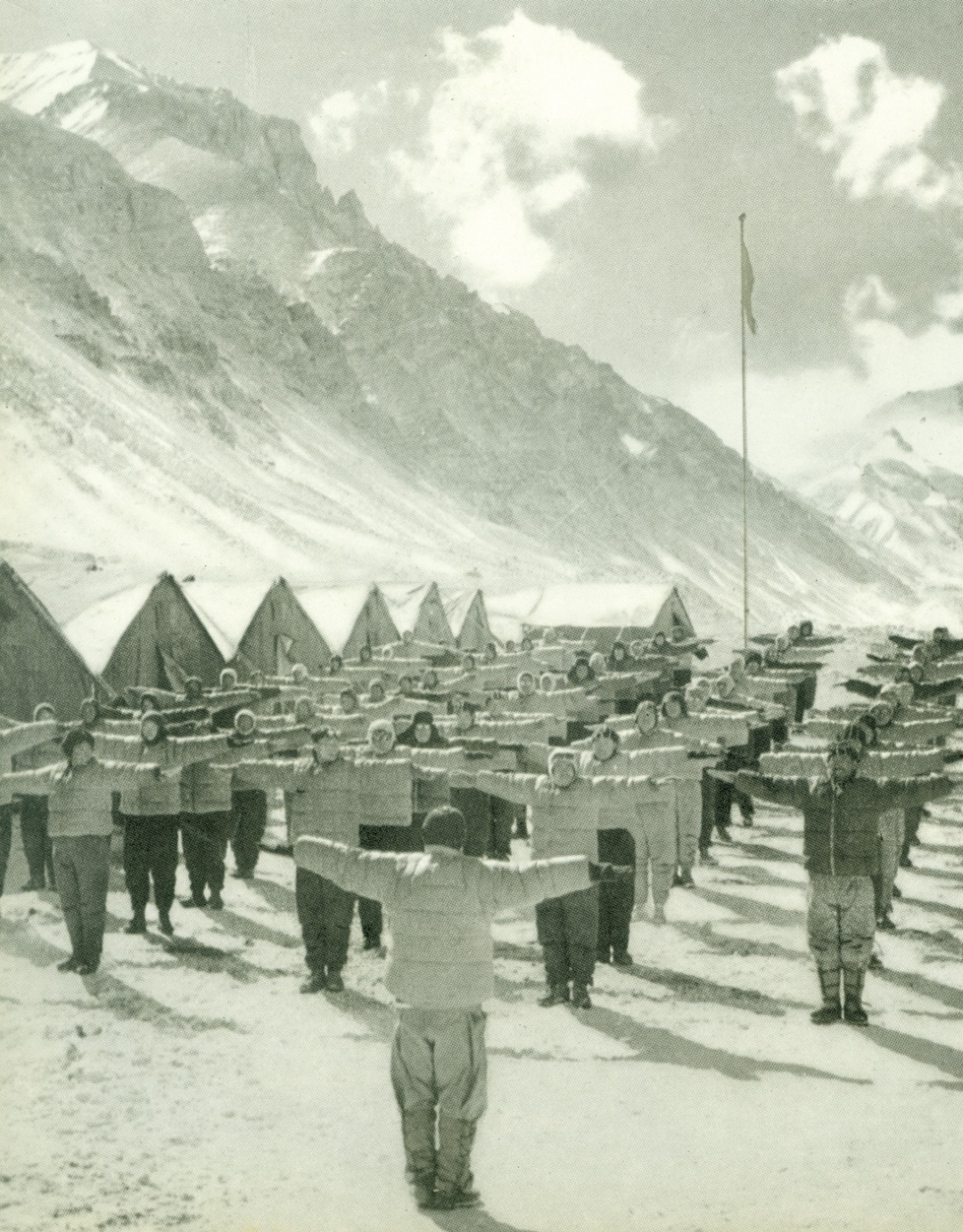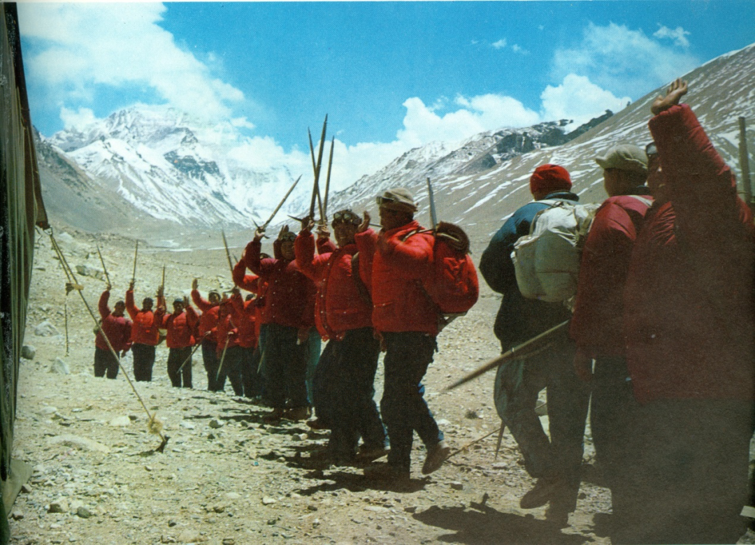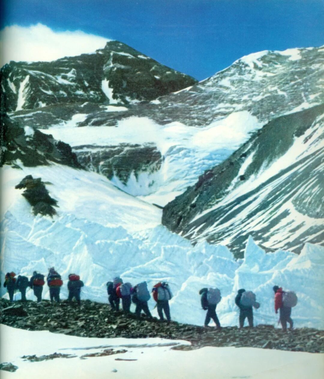 1975年3月,一支由179名登山运动员和255名科考、气象、通讯、新闻、医务、交通运输和后勤人员组成的中国登山队,来到北侧大本营。这是珠峰历史上最庞大的一支队伍,他们不仅承担着登顶的任务,而且肩负着测量珠峰高度的使命,以及进行地质、大气物理和高山生理等科学考察的任务。