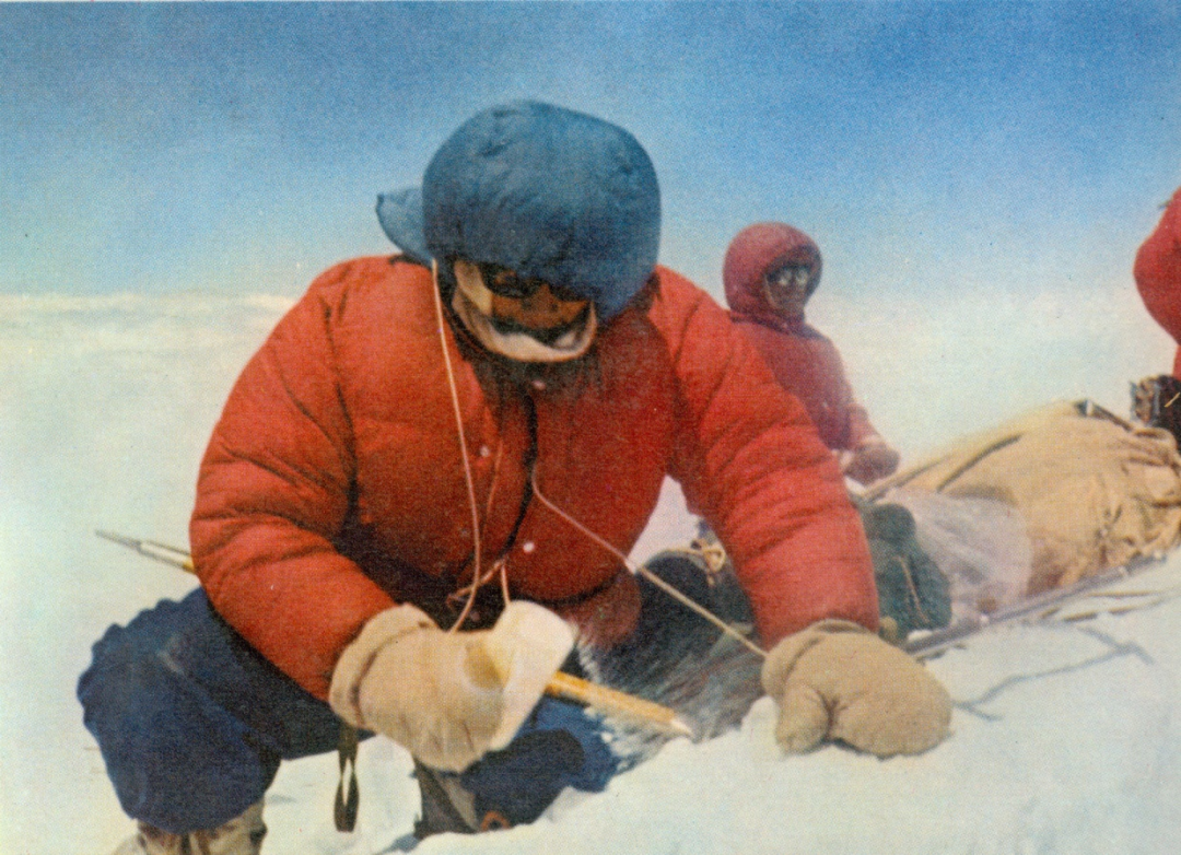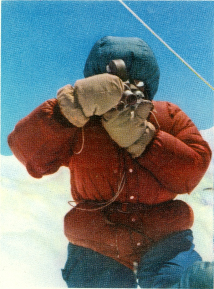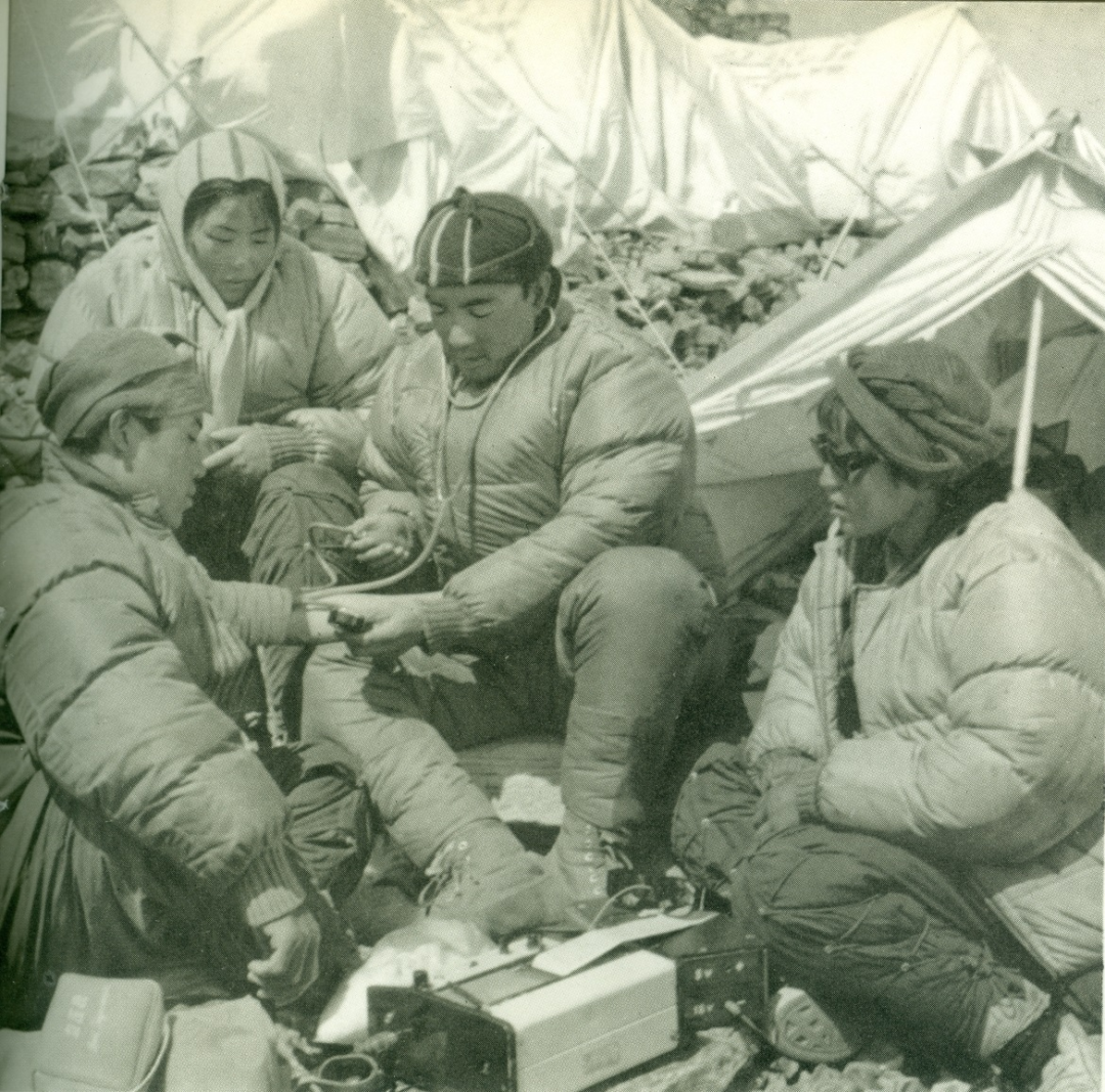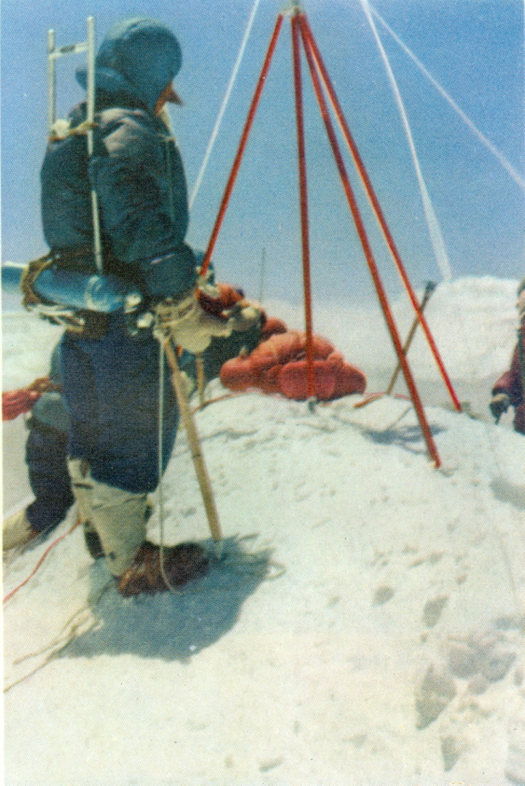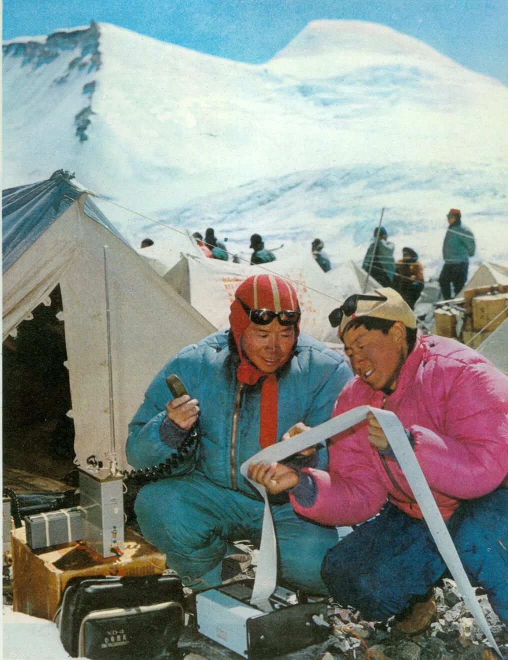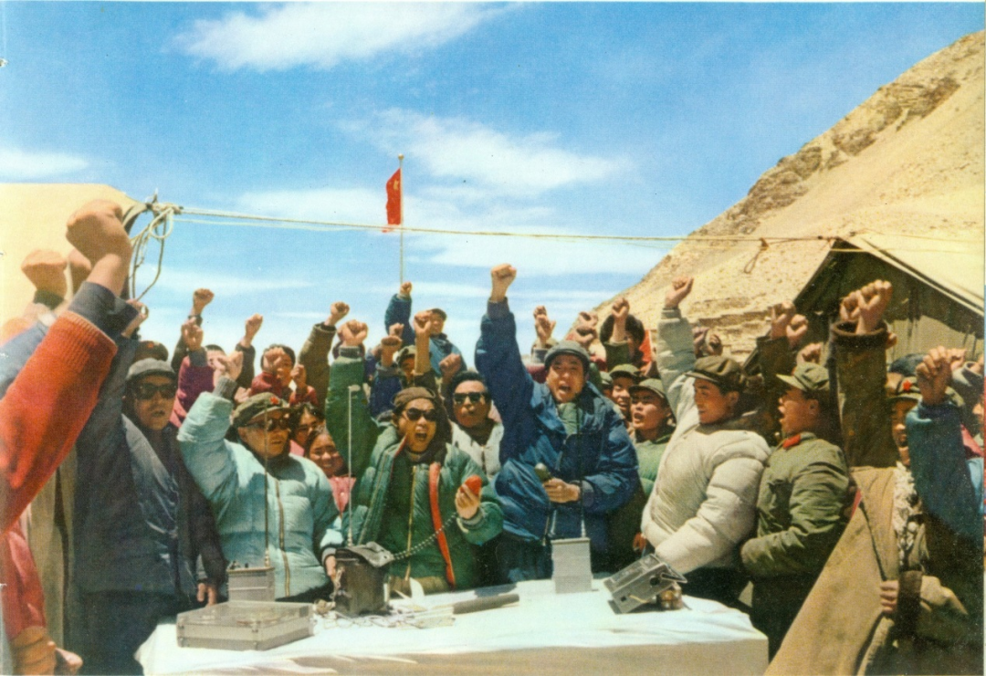 侯生福代表登顶队员向大本营报告激动人心的喜讯:“我们九个同志已经胜利地登上了世界最高峰——珠穆朗玛峰顶峰。”