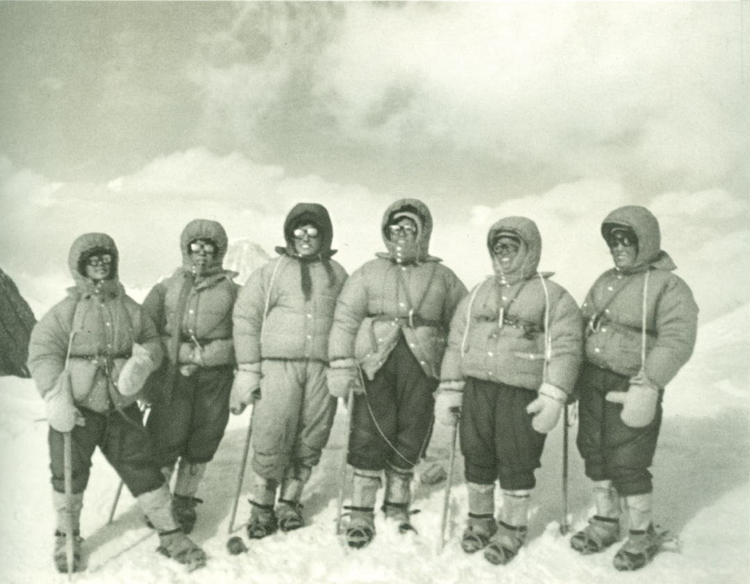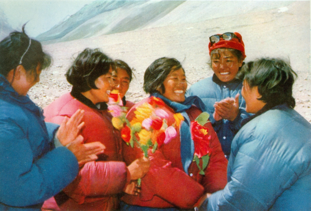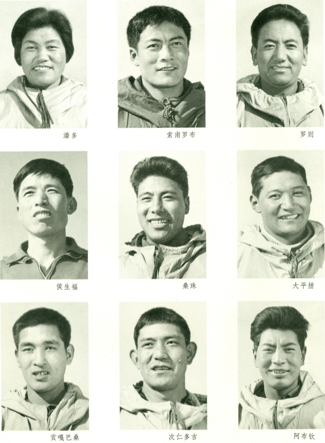 包括后来登山珠峰顶峰的潘多(右3),登上海拔8600米高度的桂桑(左3)、扎桑(右1)、昌措(右2)和登上海拔7800米高度的巴桑(左1)、白珍(左2)