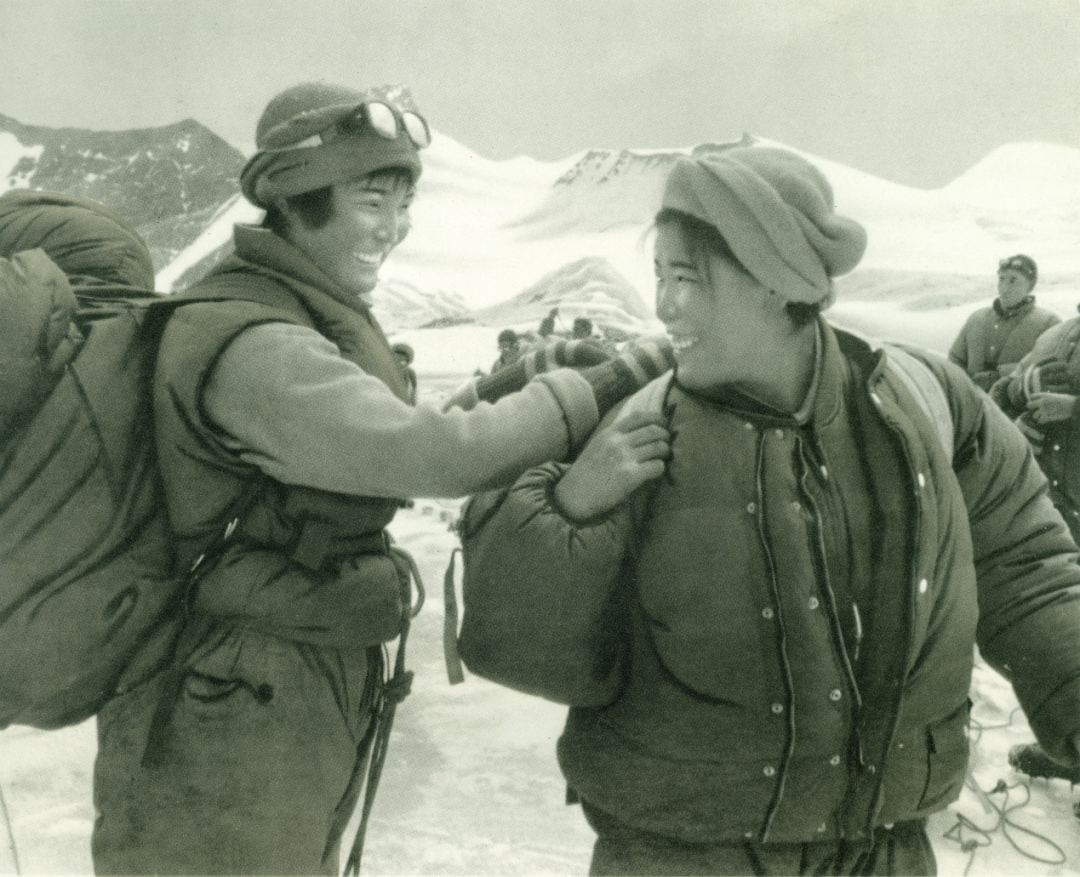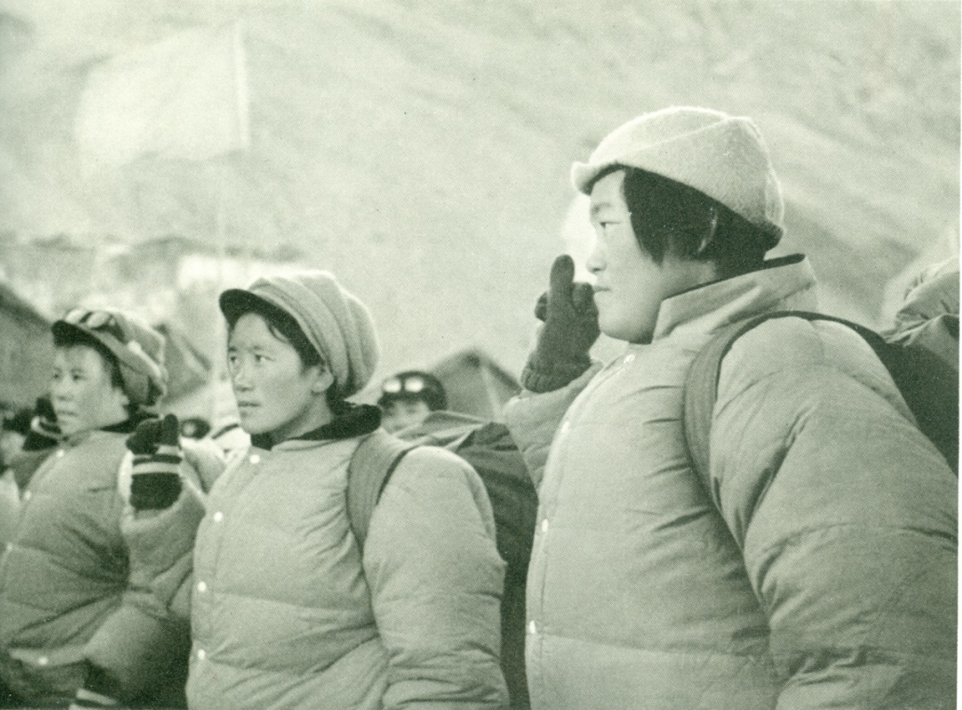 1975年5月4日下午,19岁的桂桑(女,左),在8200米营地举行了海拔最高的入党仪式