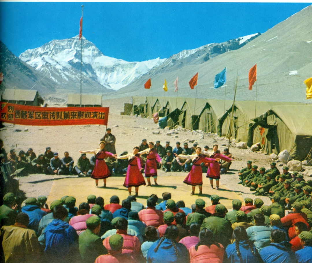 中国人民解放军驻西藏部队宣传队到大本营为登山队作慰问演出