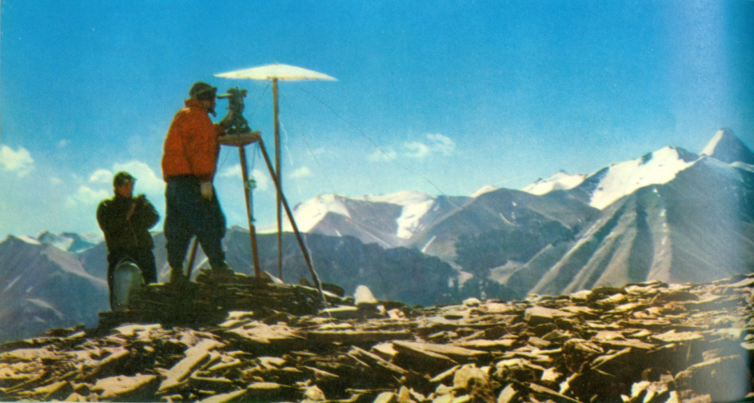 测绘工作者在海拔6120米的三角点(经水准连测)上
