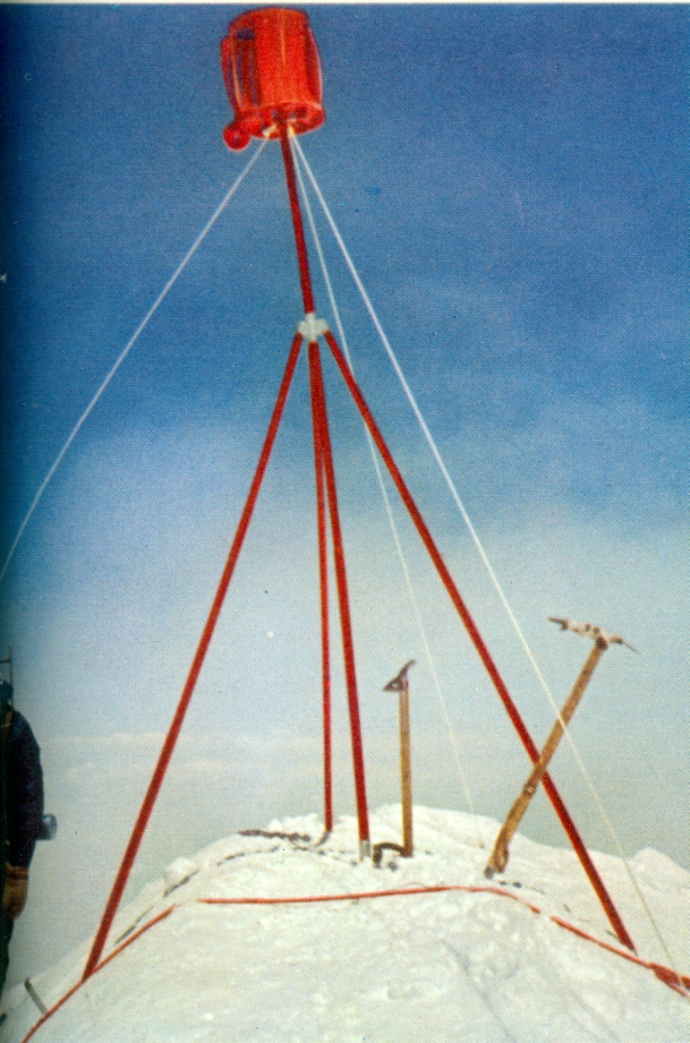 北京青云仪器厂把他们赶制的准备竖立在珠峰顶峰的