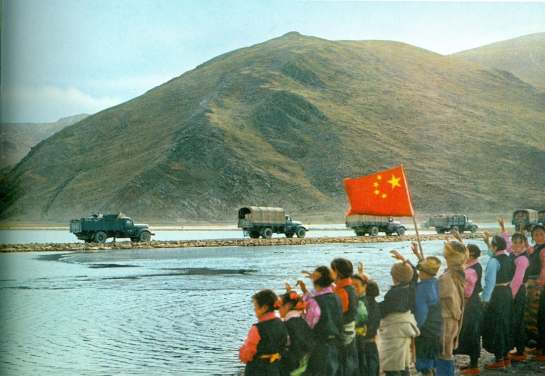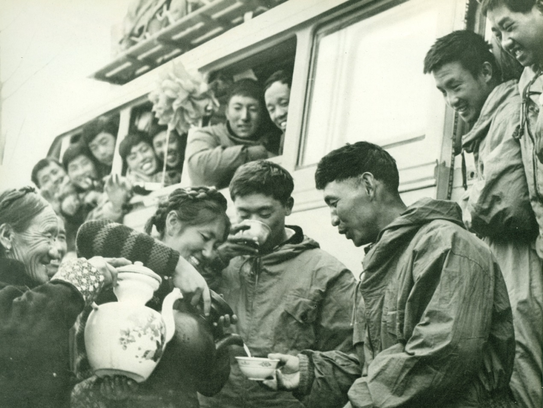 登山队向珠峰地区进军,受到沿途群众的热烈欢送