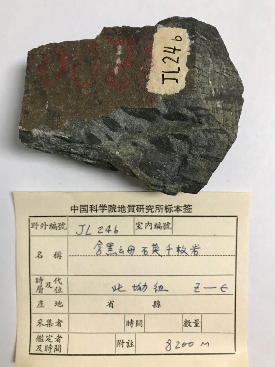 海拔8200米处的含黑云母石英千枚岩标本(保存在中国科学院地质与地球物理研究所博物馆,采集人:王洪宝)