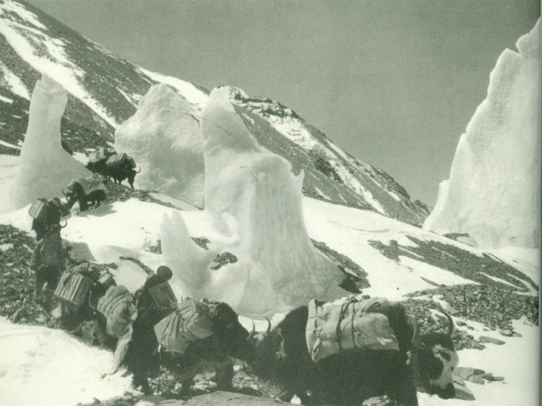藏族同胞热情支援登山队,他们把牦牛赶到过去