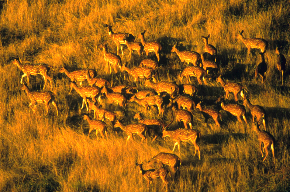 斑鹿在夏威夷的成功可以说是外来物种入侵的典范,根据专家们的估计,仅有7000位居民的莫洛凯岛上,就有约70000头斑鹿;第二大岛茂伊岛则有约50000头斑鹿;再加上其它岛屿,一共只有16000平方公里的夏威夷,至少有十多万头斑鹿在这个几近天堂的地方,无忧无虑,莺歌燕舞地惬意活着。斑鹿之所以在夏威夷如此成功,是因为夏威夷的植物和原生动物一样,也是生活过得太惬意了,傻傻的没心没肺,根本就没进化出什么防御技能,比如刺啊、毒啊什么的,让斑鹿、野猪、山羊这些外来入侵者欣喜若狂,恣意畅享,每天都要吃到扶地走。