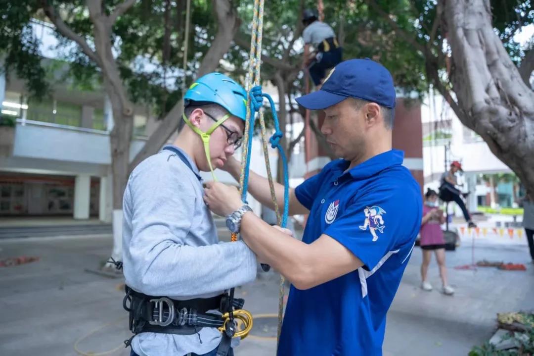 “攀树不是徒手去爬,而是及其科学的一项运动。科学一方面体现在攀树需依靠与攀岩类似的全部经过安全测试,符合国际标准的专业装备,在攀爬时不但能保护人的安全,还可以保护树的安全。另外一方面则体现在它科学的运动方式上,即并非用蛮力,而是需借助手脚间的默契配合。希望在本次户外实践中,同学们能继续带着科学思维去思考问题,解决困难,不断总结经验。”