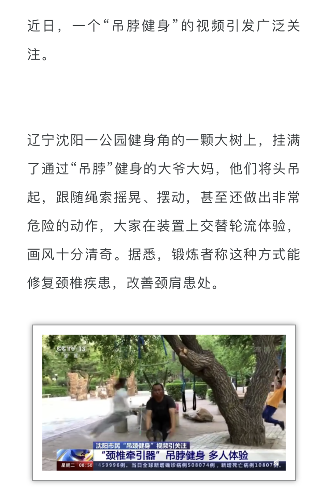 年轻人尚且如此,老年人们的情况更不乐观。这不,大爷大妈为了缓解颈椎问题,各种花式锻炼大法也被安排上了网页头条。