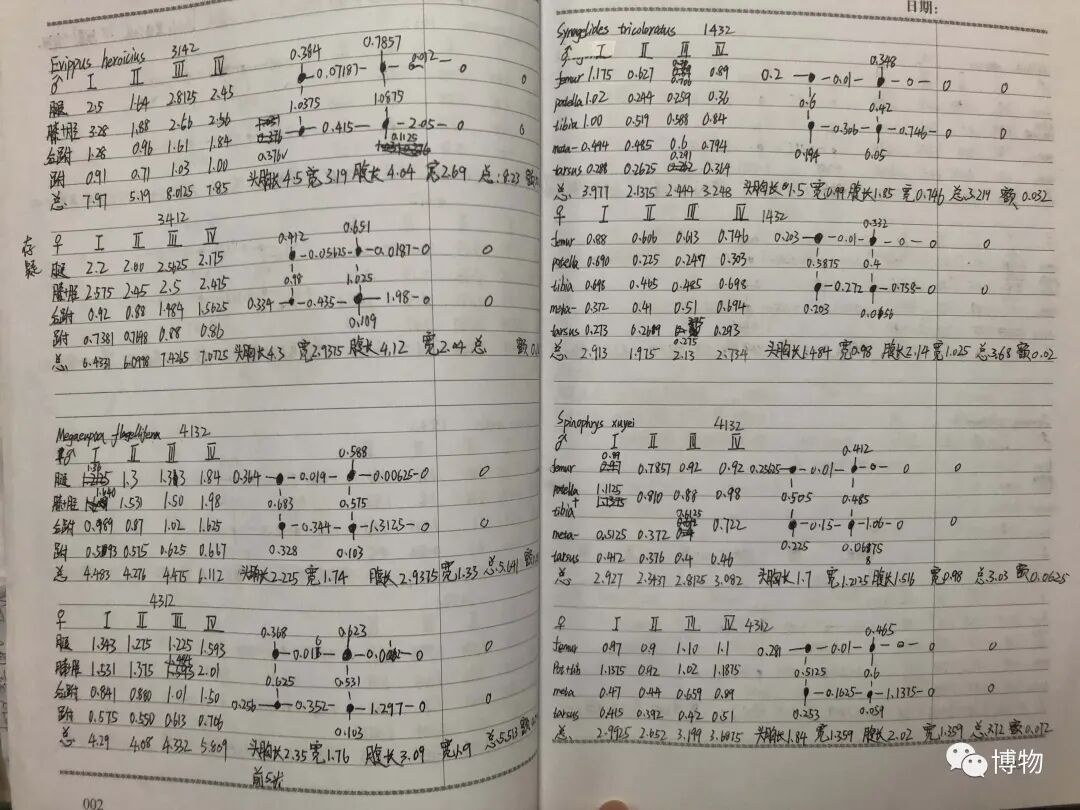 作者的测量记录本,满满两页内容的数据都属于一只蜘蛛。