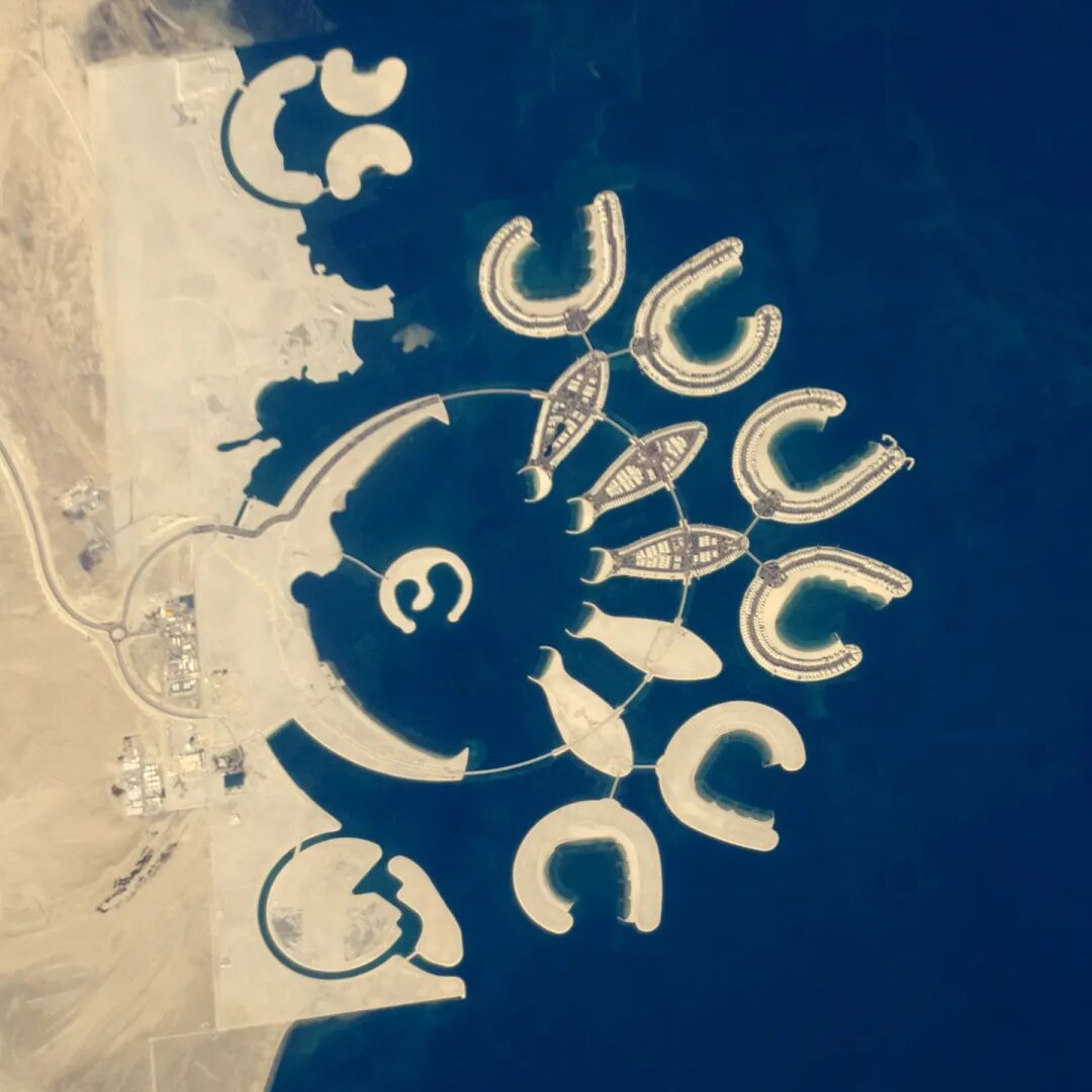 字母C的形状在地球上其实很常见,破损的火山口、陨石坑、盆地等,都有可能与C非常相像。不过,这座巴林的人造岛,不能说是毫不相关,只能说是一模一样。这张照片由一位宇航员于2011年1月23日拍摄,下方的沙滩大部分由动物遗骸的碳酸钙组成,因此呈现洁白色。不得不说有钱的石油佬可真是会享受。