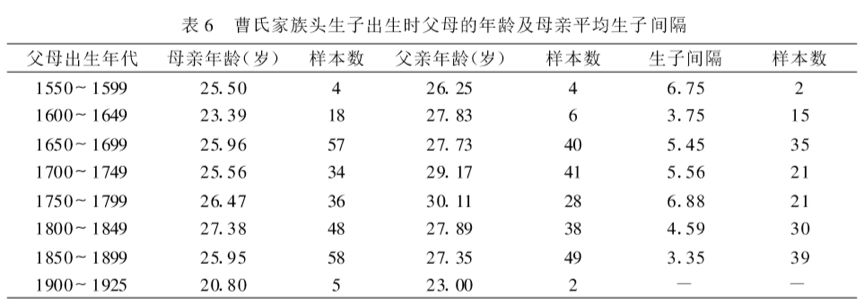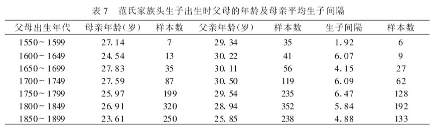 • 上海曹氏与澄江范氏的「晚育」情况。来源:侯杨方《明清江南地区两个家族人口的生育控制》