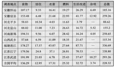 • 卜凯 20 世纪 20 年代中国各地农民家庭生活消费水平及结构调査(单位:元/户)