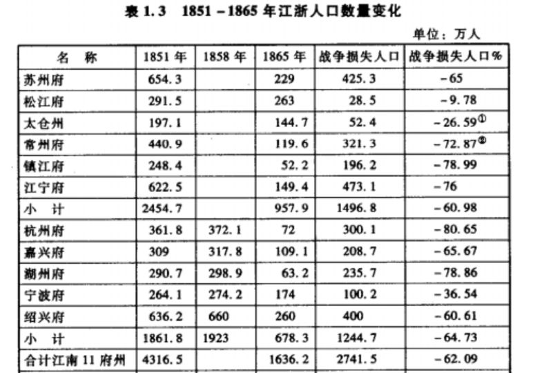 • 惨烈的太平天国战争,导致江南损失了六成以上的人口。资料来源:曹树基《中国人口史》第五卷《清时期》