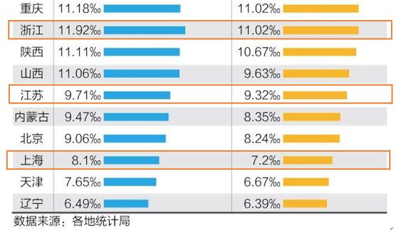 在出生率最拖后腿的 10 个省市中,江浙沪很是显眼,在同等人口体量的地域范围上堪称出生率最低的地区。