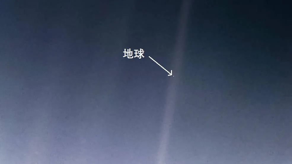 1990年2月14日,旅行者1号在距离地球64亿公里之外给地球拍了张照片。照片的名字叫“暗淡蓝点”,这张照片里的地球如同一粒尘埃。