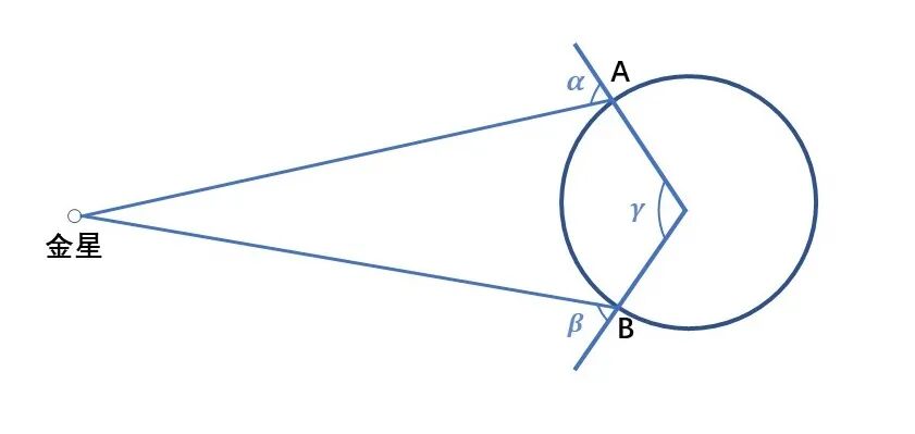 在地球上两个地点A和B分别观测金星,通过测量金星方向与垂直地面方向的夹角α和β以及AB两点对应的地心角γ,再加上人们已经知道的地球半径R,就可以通过几何方法计算出金星到地球的距离d。而这个距离刚好就是地球轨道半径与金星轨道半径之差。