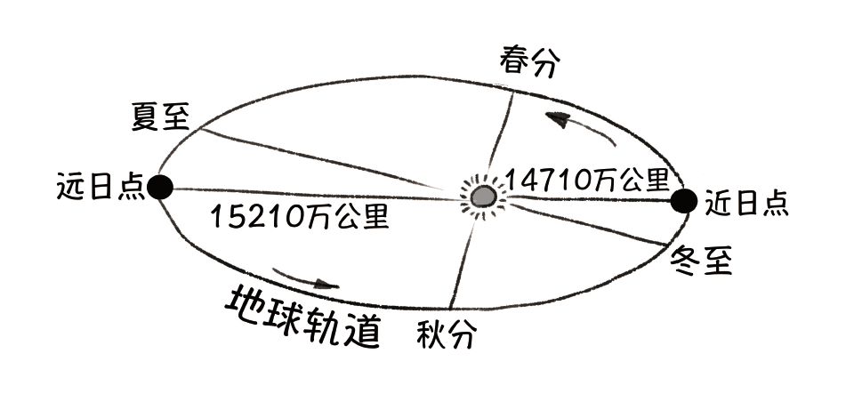 通过开普勒的研究,人类第一次认识到行星运动轨道是椭圆,而不是圆,因此行星运动时存在“近日点”和“远日点”。地球的近日点是在每年的1月初,远日点是在每年的7月初。不过,地球轨道近日点和远日点与太阳的距离相差不大,地球的轨道还是接近于圆的。