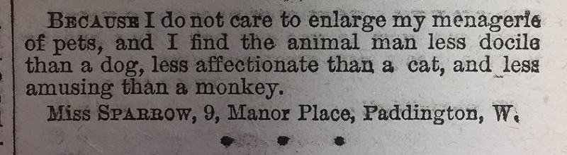 没啥新鲜的。独身主义也不是现代人的发明。看看下面这位自称无法被驯服的小姐的答复吧。