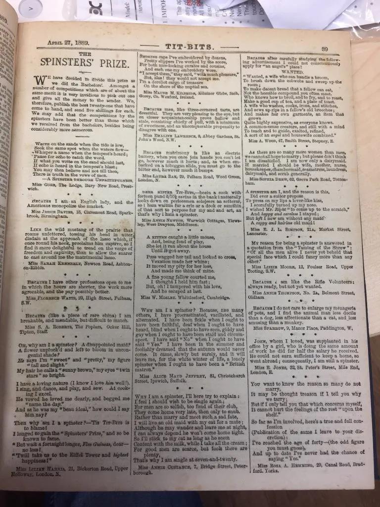 Tit-bits杂志的“剩女” 版面。@ Dr Bob Nicholson
