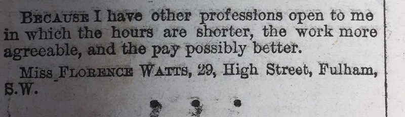 1889年,女性的薪酬是男人的一半。妇女合法赚钱彼时还是一桩新奇事。在1870年通过的《已婚妇女财产法》(Married Women’s Property Act)之前,已婚妇女不允许保留其收入。如果她工作,那工资就要付给她丈夫。