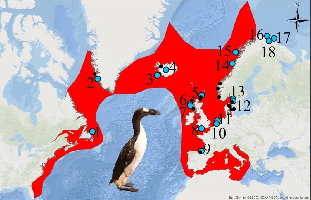 大海雀曾经广泛分布于大西洋北部 | Thomas et al. / Elife (2019)