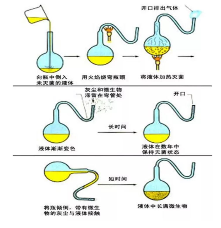1860年(第二次鸦片战争之际),巴斯德便以其精巧设计的曲颈瓶实验成功地否定了微生物自然发生学说。