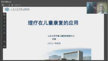 5月17日,中国康复医学会科技者工作日科普系列活动走进山东,本次活动由中国康复医学会儿童康复专委会、山东大学齐鲁儿童医院联合开展。邀请山东大学齐鲁儿童医院康复中心资深康复治疗师何娜开展家长大课堂,为患儿家长作《理疗在儿童康复的应用》的科普讲座。何娜老师通过生动的课件和大量实例,深入浅出的为家长们讲解了物理因子治疗的基本原理、治疗作用、适应症和禁忌症,解答了家长朋友们关心的一系列问题。参与活动的家长们听讲认真,积极互动,现场气氛活跃。本次科普讲座在线上和线下同步进行,线下有30余名患儿家长到场,同时有178名患儿家长通过钉钉群线上学习收听。本次家长大课堂为患儿家长普及了急需的康复理疗知识,为家长给孩子选择适当的治疗方法提供了参考,得到了家长一致认可。