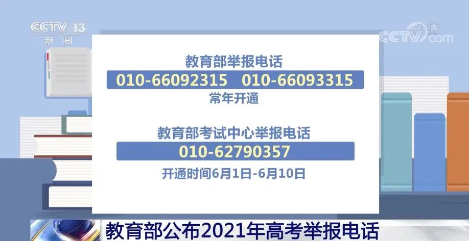 近日,教育部统一公布了教育部以及全国31个省(区、市)教育行政部门和招生考试机构2021年的高考举报电话,欢迎广大考生、家长及社会各界人士及时举报反映涉及2021年高考的问题线索。