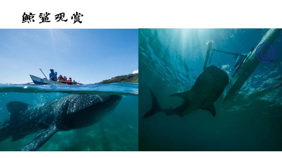 那么村民们不但不捕杀,他们还定点定时地投喂鲸鲨,把鲸鲨变成了一个游客可以观赏的旅游项目,那么游客可以在上面看鲸鲨,他可以来投喂,他每年给当地带来的几百万美金的产值,这就是一个保护跟掠夺式捕杀的一个例子。