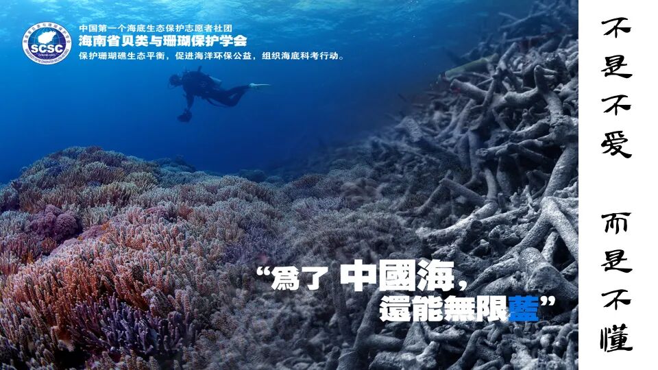 后来因为身边越来越多的朋友喜欢水下摄影,喜欢潜水,我们一起去海底探索,于是我们就成立了中国第一个海底生态保护的志愿者组织——海南省贝类与珊瑚保护学会。