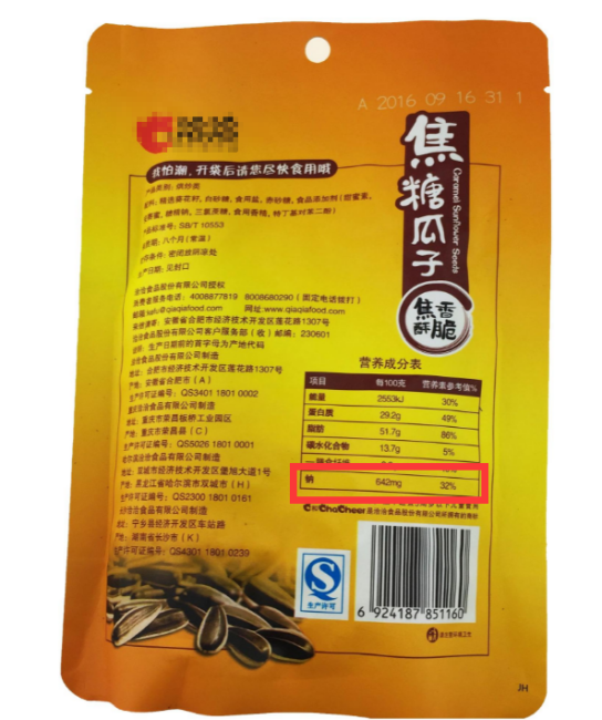 三五好友下班相聚, 左手麻小,右手冰啤,好生惬意; 外出游玩,直奔美食, 臭豆腐、螺蛳粉、麻辣烫、铁板烧……回味无穷。 无论在家,还是出游,唯有重口美食不可少。 但这也让我们在不知不觉中,吃进去了更多的盐。 《中国居民减盐核心信息十条》提倡“每日食盐量应不超过5g”,但实际上,我国人均日食盐量在10.5g左右。 大多数中国人,盐都超标了! 长期高盐饮食,虽然味蕾得到充分满足,但患高血压、心血管疾病、肝肾脏疾病、骨质疏松,肥胖的风险,却大大增加! 更严重的是,还可能引发胃癌! 从饮食上看,胃癌高发地区极具地方特色,如辽宁庄河县的咸猪肉,福建长乐县的虾油、腌鱼干、鱼露,甘肃武威市的腌菜…… 可能有人会说,我很少吃咸菜、腌肉、熟食……炒菜也很清淡,这样就没风险了吧? 不!生活中还有很多藏匿的“隐形盐”,让很多人爱不释口。 藏在美食中的“隐形盐” 1.甜食类 隐形代表:面包、蛋糕、奶酪、冰激凌、饼干 以苏打饼干为例:钠含量580mg/100g 原因:这些食物制作时需加入盐才能发酵。之所以感觉不到咸味,是因为添加了很多糖。 2.零食类 隐形代表:话梅、蜜饯、海苔、薯片 以话梅为例:钠含量2200mg/100g 原因:为便于储存,这些食品制作时会添加很多盐。 3.饮料 隐形代表:碳酸饮料、蔬菜汁、运动饮料 以可乐为例:钠含量12mg/100ml 原因:这些盐大多以“钠离子”形式存在。 4.干果类 隐形代表:瓜子、开心果、大杏仁 以瓜子为例:钠含量642mg/100g 原因:为了改善口味,加入食盐来调味。 这些生活中常见的零食饮料,让你不知不觉就摄入了超量的盐...... 知识点 1g食盐=400mg钠;1g钠=2.5g食盐。 (以上数据来自部分产品包装标识) 如何识别零食是否高盐? 对,就是看食品包装的营养成分表。 根据《中国居民减盐核心信息十条》:每100g固体食物钠含量>600mg,每100ml液体食物钠含量>300mg,就属于高钠食物。 也可以看营养成分表的NRV%数值👇👇👇 NRV%,是指每100g/ml或每份食物中所含营养成分,是人体一天需求量的百分比(人体一天所需约在2000-2500mg之间)。 还是以话梅为例👇👇 从NRV%看出,吃100g话梅,就达到1天适宜钠摄入量。 所以,赶紧扔回货架...... 少吃怡情,多吃伤身。 零食虽好,可不要贪嘴哦! | 封面图源:pixabay | | 正文图源:网络 |